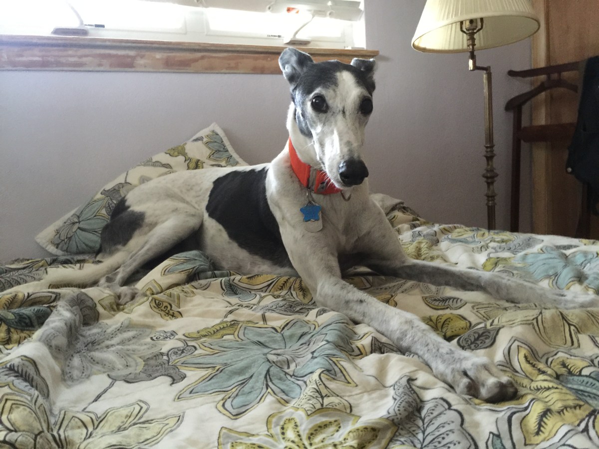 Greyhounds will keep on keeping on into overtime. Both Lance and Nick did so. They loose their super powers little by little and also their ability to do activities of daily living little by little. And the progression is one of hills and valleys rather than a steady descent. It was helpful to identify a terminal quality of life but Nick did not approach it linearly. Rather, he’d have good days and bad and good hours and bad. He could appear to be down only to nap for a couple of hours and hop up to follow me around as best he could. It is a myth that they will let you know when it is time.