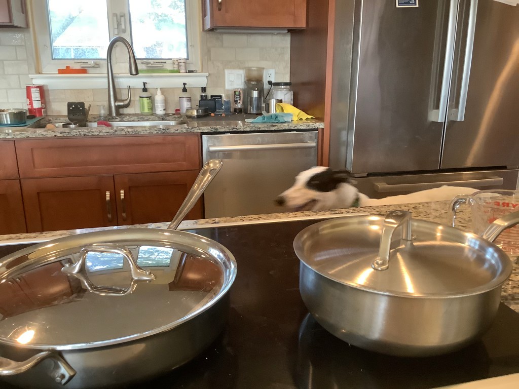 I’ve had a promotion from Rocky the Gormless to Rocky the Restless. Apparently, I’m no longer dumb as a rock. I’ve learned my name, I have a bit of a recall, I’m kenneling, I’m getting my table manners down, and getting along with big sister, mostly. And I’ve mastered Missy’s wet Willie technique of rousing the Moocher to use the loo while he is asleep. Missy says this is really important!
