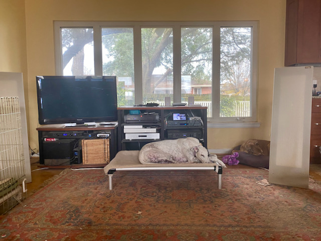 The featured image shows my first attempt at placement. This position worked well for the dogs. They had plenty of room to navigate around them. The sound was OK.
