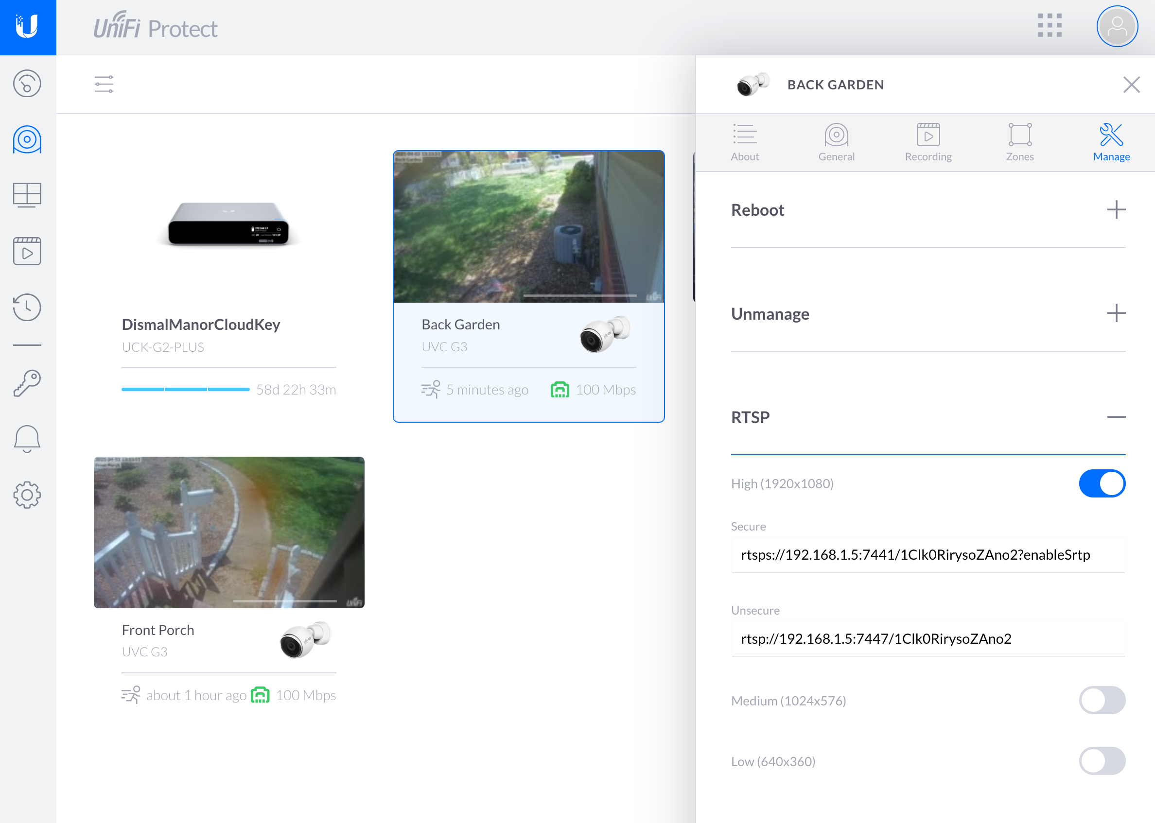 Once you have finished with HomeBridge, move to UniFi Protect to set up the cameras to allow RTSP forwarding.