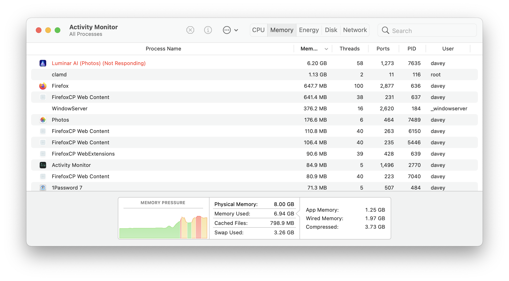 It appears, Luminar Ai wants memory! Luminar grabbed 6.2 gigabytes of main storage. I knew there was a reason to get the larger memory configuration.