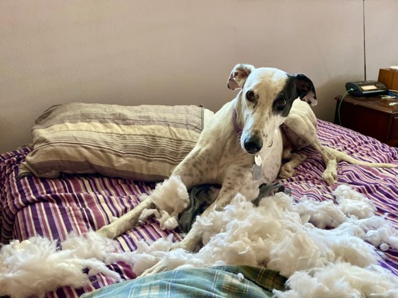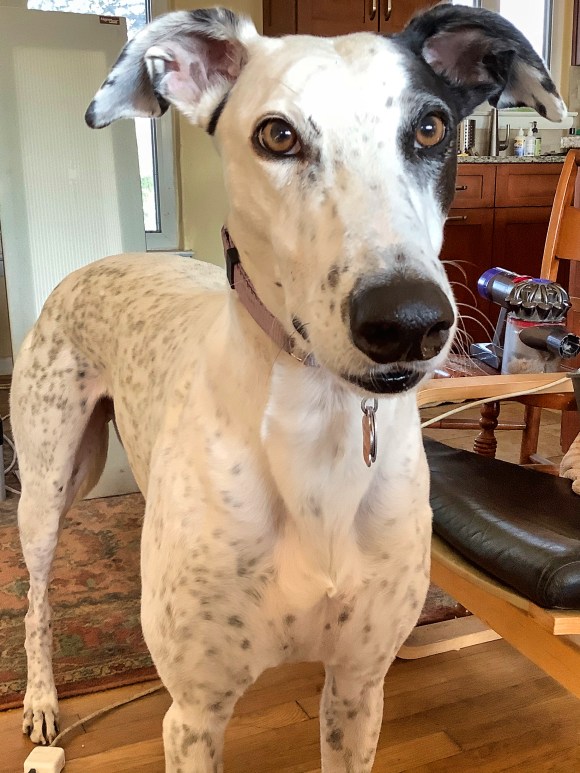 At 4, I was still pretty much a muscle-brained adolescent. Year 5 makes a big difference as does patient and consistent teaching of manners. I’m still an extrovert as greyhounds go and will hop on shoulders and give sugar to strangers. But I’ve learned the household routine, what should happen when, how to ask for what I need, and patience to wait my turn for treats, feeding, and other important things. I’m good about sharing toys and don’t hoard the lot.