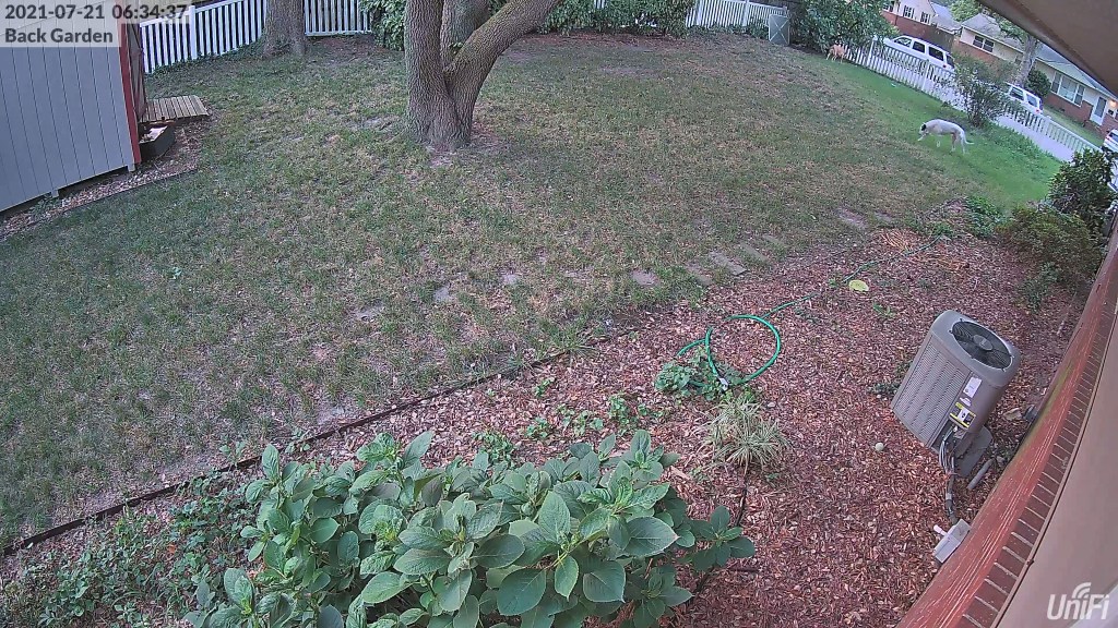 The cameras at Dismal Manor are placed to watch the dogs in the garden so I don’t have to stand around on the porch in a dubious state of dress for Rocky’s 0200 turnout. The cameras also tell me when dogs are dancing on the porch to come in. In addition, they show the fence line and will record any incidents occurring at the fence. So far, there have been none.