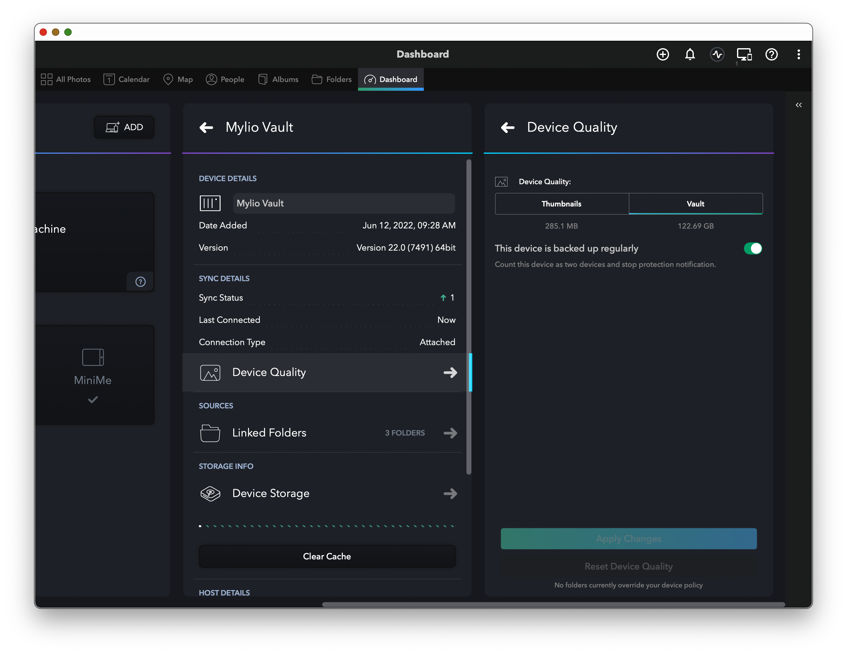 The figure shows my installation’s dashboard. A device’s Device Quality settings determine whether it is a vault or another shared copy of the library.