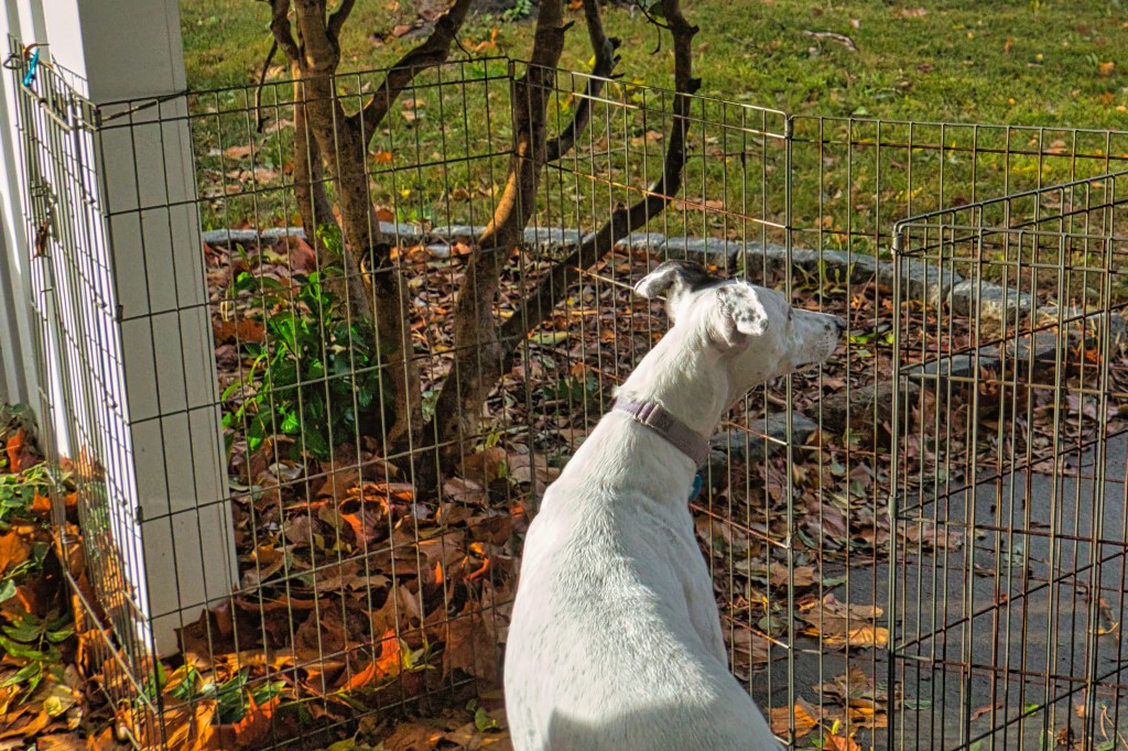 Dismal Manor has a fallen limb to remove and a fence to patch so Rocky won’t go runner. Rest assured, loppers and a pruning saw will do the work. If we have a big piece, I’ll drag it up front for the city to collect with the clam shell truck.