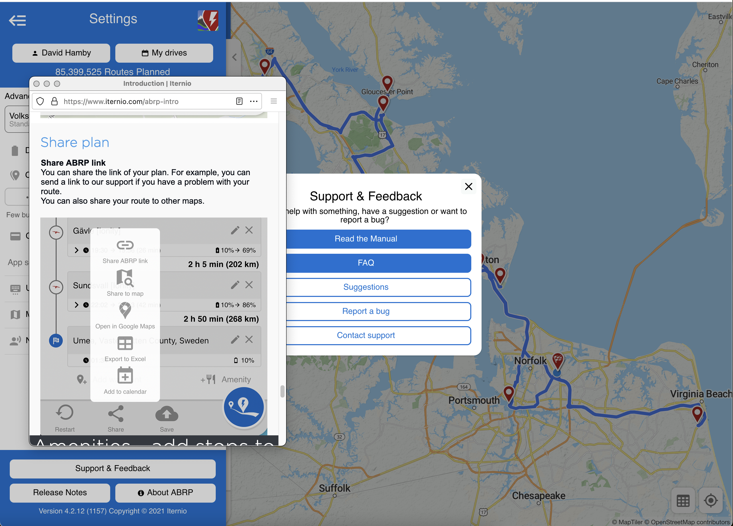 A Better Route Planner includes a comprehensive manual and sharing. The manual has a good task-oriented work flow that will lead you through the route planning task, saving the route plan, and sharing the route plan with travel partners or transmitting it to your navigator.
