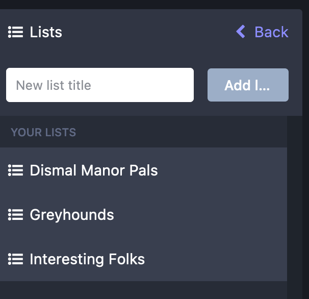 Timelines can get pretty crowded if you follow many people. Lists let you create a timeline view that shows only posts from those in the list. I have several.