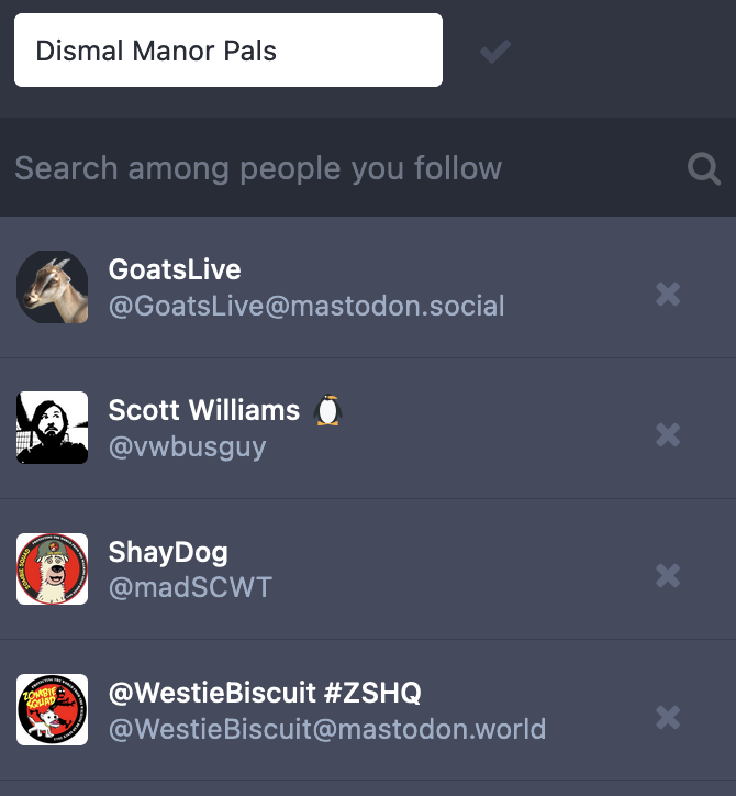 To edit a list, first put it on display. Then click the widget in the top left corner. That opens the controls pane below the list banner. The click the edit pencil to bring up the member list and tools to add and remove members.