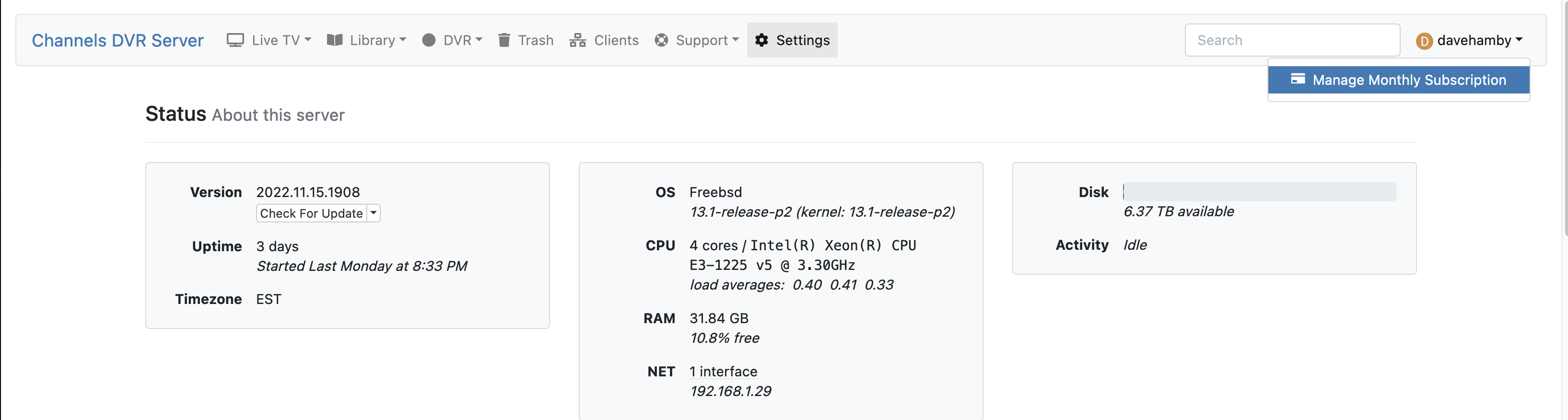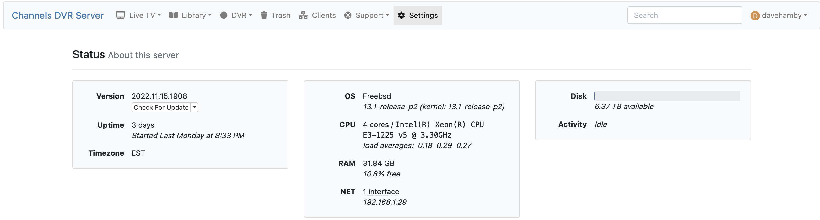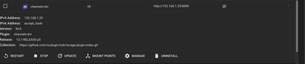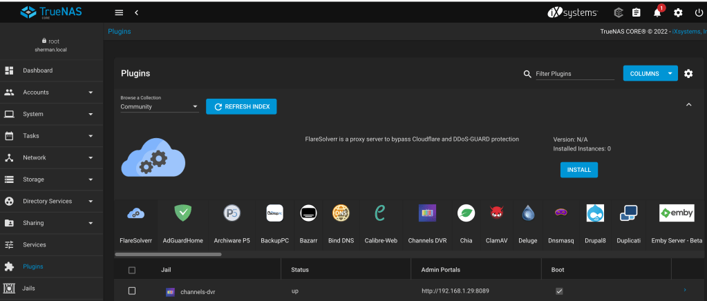 Dismal Manor, after surveying the available DVR applications, went with the Channels DVR separating tuner, media library, and DVR functions. I installed Channels on Sherman, our TrueNAS 13 Core server used as a backup device.