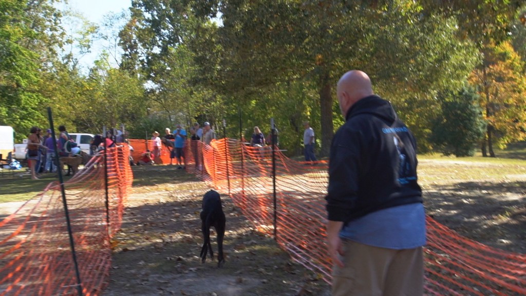 Both dogs rode to Richmond for reunion with James River Greyhounds. Rocky did marshmallow run.