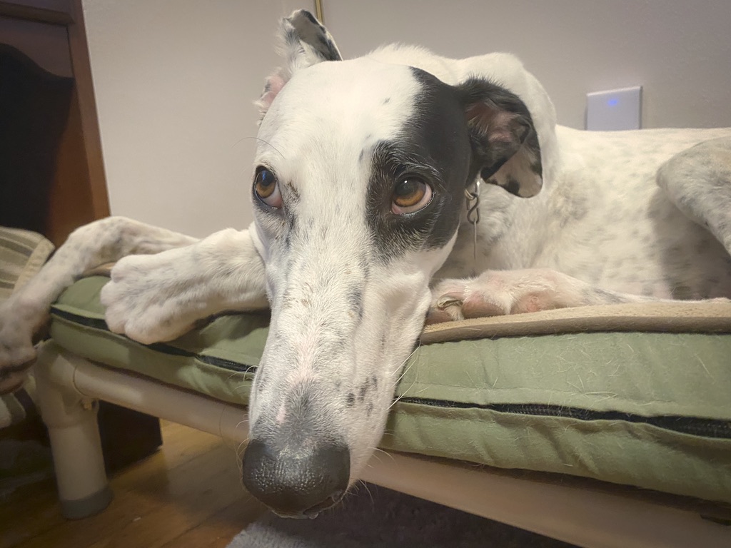 Since 1995, there has always been at least 1 greyhound in the manor. Since 1997, it’s been 2 until Missy left us as a result of complications of old age. While Missy was in decline, Rocky presented with a cough that was traced to mid-stage lung cancer. Rocky’s disease was discovered before he was in decline. And I’ve been able to manage the discomfort from the disease in the mid-stage.