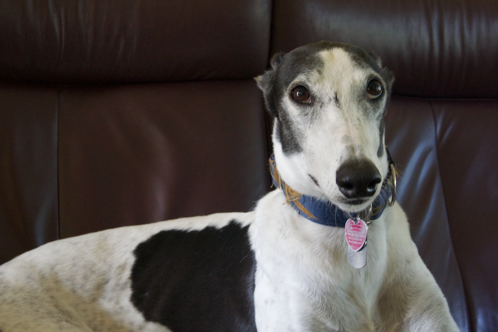 And she’s a bit shy. But she had a pretty unsettling couple of days being loaded into a greyhound hauler for the trip to Tidewater, a few hours with Dominion Greyhounds adoption coordinator, then hand-off to me. The original plan was to do introductions at my friend Judy Schooley’s home, then take the dogs on home. Missy was so shy that I nixed that plan, stopped to retrieve Nick, and took her straight home. Of course, this was Friday, a mid-day beer tasting outing at O’Connor Brewing here in Tidewater with Judy, send Nick to Judy’s, drive to Gay’s to get Missy, then to Judy’s to retrieve Nick and home. We got in around 4 PM on Friday.
