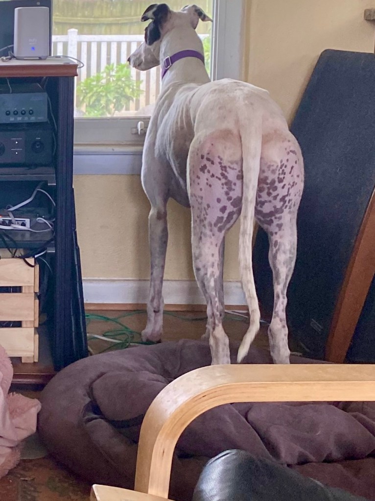His ticking makes him look like he is wearing yoga pants! This is an iOS 13 Apple Clips manipulated image that exaggerates his markings and coat texture. In boring reality his bum looks like this.