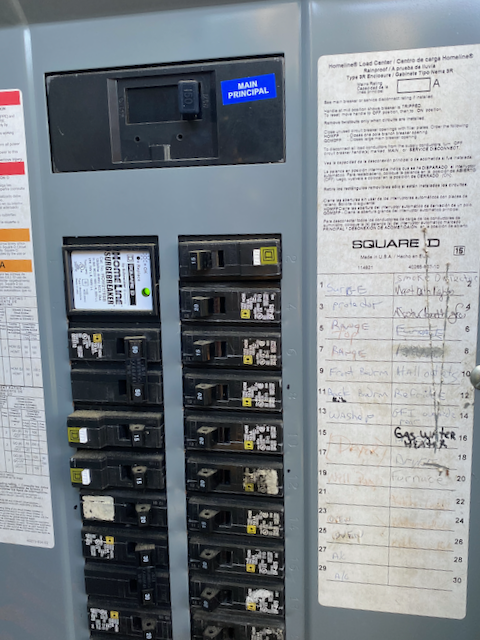 - Provide printed labels for all circuits with particular attention to the following: air handler, refrigerator, HVAC compressor, cook top, oven, Renai water heater, washer, dryer, dishwasher, disposer, east lighting, west lighting, bathrooms and smoke detectors, lounge lighting, kitchen service circuits.